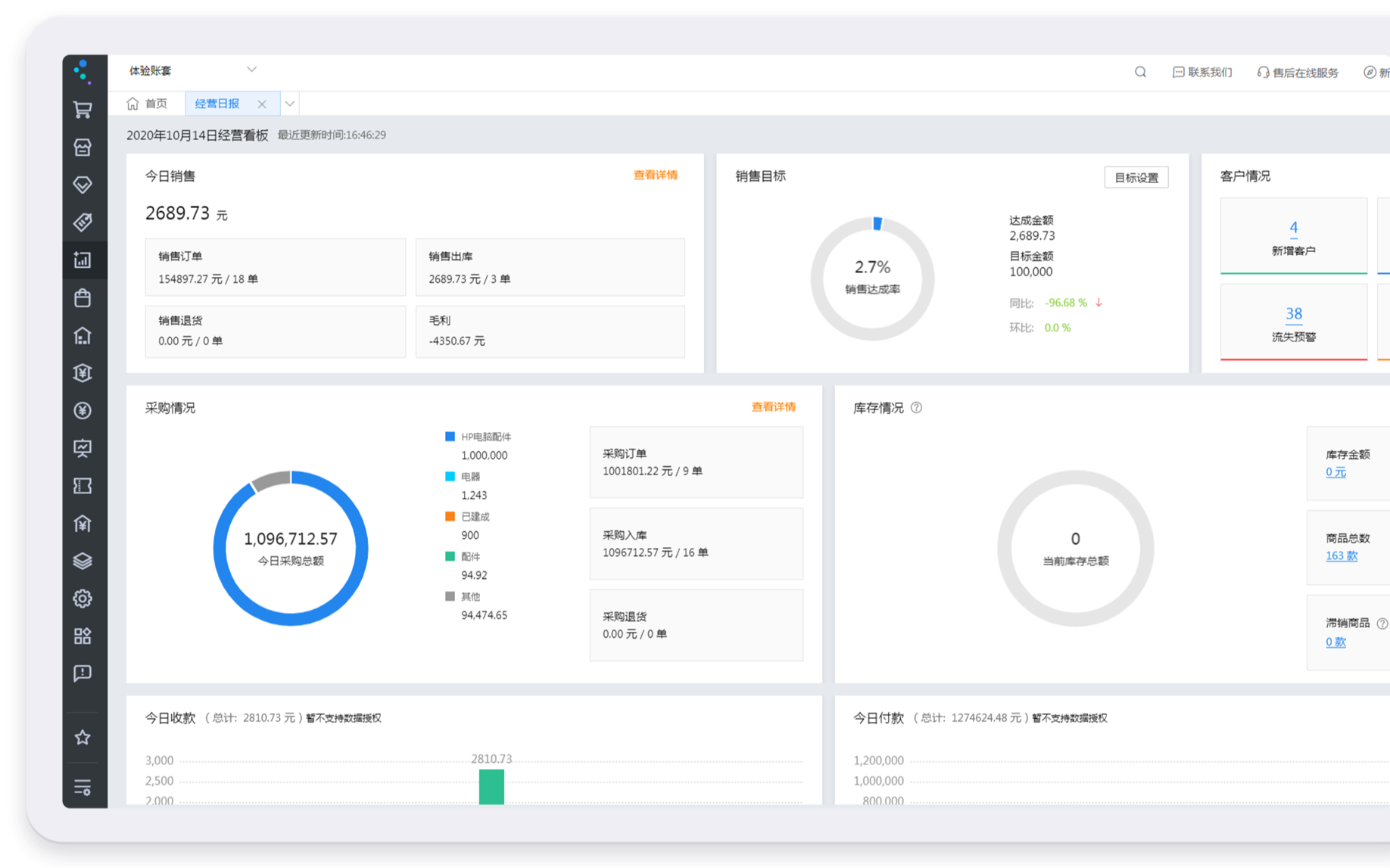 构建企业线上和线下一体化经营能力,采购、销售、收款、发票、出入库等全流程业务跟踪,实现业务流程闭环管理